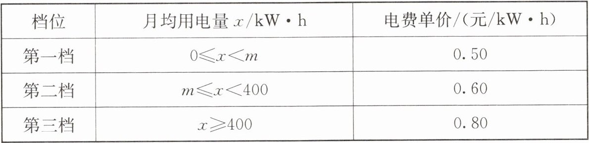(3)为鼓励节约用电,将原来$0.50 元/kW\cdot h$的电费标准改为按月均用电量分为三档,如下表所示.