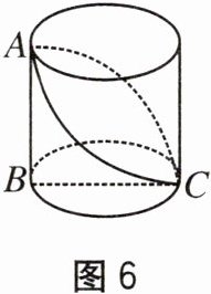 7. 每年的秋分日是“中国农民丰收节”. 小彬用3D打印机制作了一个底面周长为20 cm、高为10 cm的圆柱粮仓模型. 如图6,BC是底面直径,AB是高. 现在在此模型的侧面贴一圈彩色装饰带,使装饰带经过A,C两点(接头不计),求彩色装饰带的最短长度.