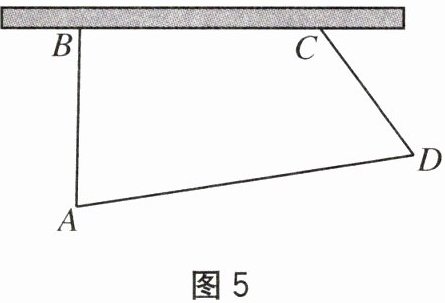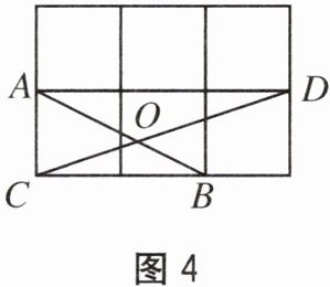5. 如图 4 所示的是 $ 3×2 $ 的正方形网格,每个小正方形的顶点称为格点. 线段 $ AB $,$ CD $ 的端点均在格点上,线段 $ AB $,$ CD $ 交于点 $ O $,则 $ ∠BOD $ 的度数为(