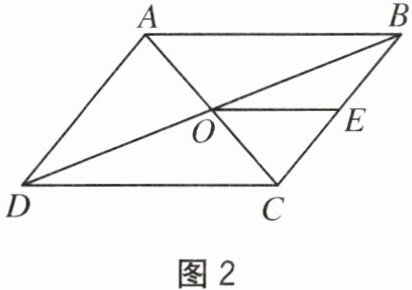 2. 如图2,在$□ ABCD$中,$AC$与$BD$相交于点$O$,$E$是边$BC$的中点,$AB=4$,则$OE$的长是(