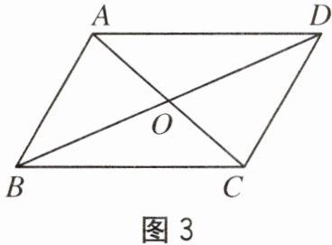 4. 如图3,$□ ABCD$的对角线$AC$,$BD$相交于点$O$,若$AC=4$,$BD=6$,则$AB$的长可能是(