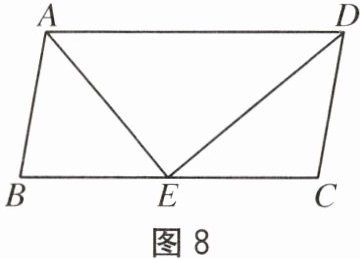10. 如图8,已知在$□ ABCD$中,$DE$是$\angle ADC$的角平分线,交$BC$于点$E$.