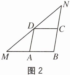 2. 如图2,在△MBN中,BM=6,点A,C,D分别在MB,NB,MN上,四边形ABCD为平行四边形,且∠NDC=∠MDA,则□ABCD的周长是(