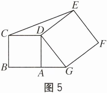 8. 如图5,点$A$在线段$BG$上,四边形$ABCD$和$DEFG$都是正方形,面积分别为16和20,求$\triangle CDE$的面积.