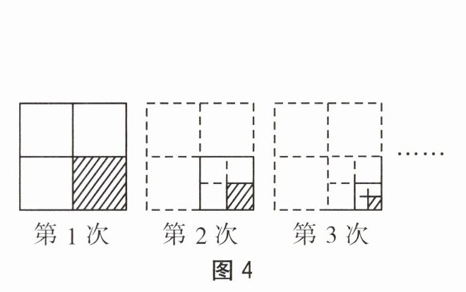 7. 如图4,将一张正方形纸片分割成四张面积相等的小正方形纸片,然后将其中一张小正方形纸片再分割成四张面积相等的小正方形纸片,如此分割下去. 第6次分割后,共有正方形纸片