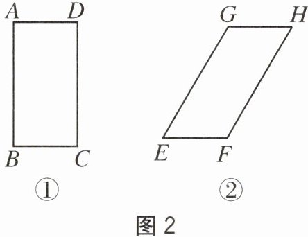 兴趣小组根据素材2分别设计了垂直停车位和倾斜停车位. 垂直停车位(矩形)如图2①,AB⊥AD,CD⊥AD,AB=CD;倾斜停车位(平行四边形)如图2②,EG=FH,∠G=120°,∠H=60°.