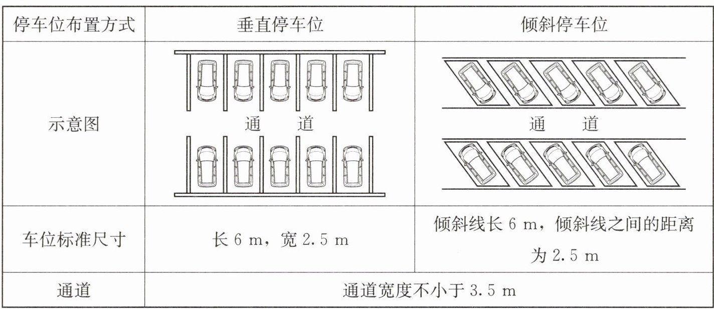 垂直停车位布置方式和倾斜停车位布置方式设置的停车位数量一样多