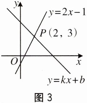 6. 数形结合是解决数学问题常用的思想方法。如图 3,直线 $ y = 2x - 1 $ 与直线 $ y = kx + b $($ k \neq 0 $)相交于点 $ P(2,3) $。根据图象可知,关于 $ x $ 的不等式 $ 2x - 1 > kx + b $ 的解集是(