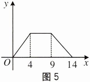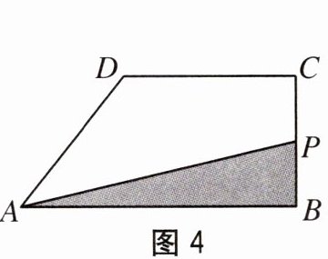 7. 如图 4 所示,在直角梯形 $ ABCD $ 中,$ AB // DC $,$ \angle B = 90^{\circ} $。动点 $ P $ 从点 $ B $ 出发,沿梯形的边由 $ B \to C \to D \to A $ 运动。设点 $ P $ 运动的路程为 $ x $,$ \triangle ABP $ 的面积为 $ y $。把 $ y $ 看作 $ x $ 的函数,函数的图象如图 5 所示,则 $ \triangle ACD $ 面积为(