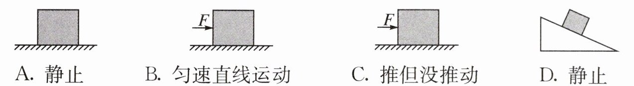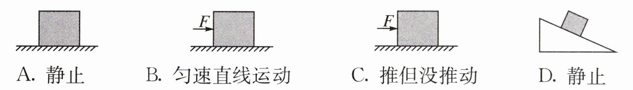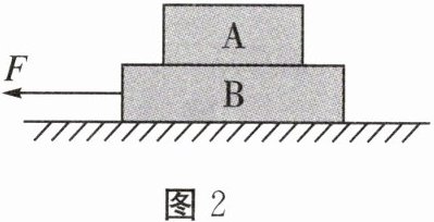 4. 如图2所示,水平面上叠放着A、B两个物块,在水平方向力F的作用下,两个物块相对静止,一起向左做匀速直线运动。已知F=5N,下列说法正确的是( )。