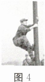 6. (多选题)为强化能力,战士们每天都要进行刻苦训练。如图4所示,是战士爬杆训练的场景,战士在匀速直线向上爬升的过程中( )。