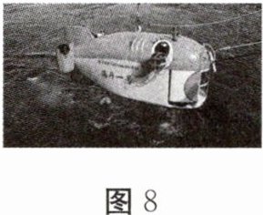 9. 如图8所示,我国自主研制的“海斗一号”全海深自主遥控潜水器多次下潜至万米深海,完成了声学测线、布放标志、沉积物取样、高清摄像等一系列科考任务。(g取10N/kg,海水的密度近似取$\rho_{海水}=1.0\times10^{3}kg/m^{3}$)