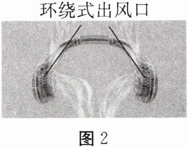 4. 如图2所示,“无叶电风扇”内部有一台电动机吸入空气,空气经过加压后被送入环绕式的出风口,从缝隙中向外喷出,这部分喷射空气因流速大、压强______,使周围空气______(选填“靠近”或“远离”)这部分喷射空气,从而带动周围空气流动,使人感觉凉爽。