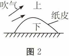 4. 如图2所示,卷弯的纸皮放在水平地面上,向纸皮的上方吹气时( )。