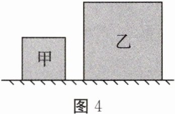 6. 如图4所示,均匀实心正方体甲、乙置于水平地面上,它们对地面的压力相等,甲的棱长小于乙的棱长。下列说法错误的是( )。