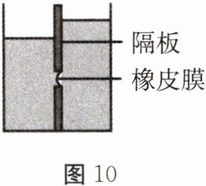 1. 如图10所示是小明用来研究液体内部压强特点的实验装置。容器中间用隔板分成左、右两边,隔板下部有一圆孔用薄橡皮膜封闭,橡皮膜两侧压强不同时会向某一侧凸起。