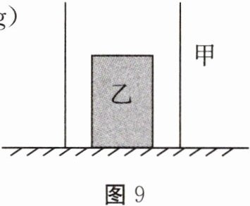 13. 如图9所示,足够高的薄壁轻质柱形容器甲置于水平地面,容器底面积为$2\times10^{-2}m^{2}$。其内部放置的柱体乙的重力为20N,高为0.2m,底面积为$0.5\times10^{-2}m^{2}$。现向容器中倒入3kg水。求:(g取10N/kg)