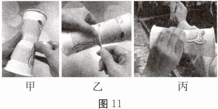 制作步骤:(1)将两个纸杯底相对,用胶带粘在一起如图11甲所示,纸杯滑翔机就做好了。
