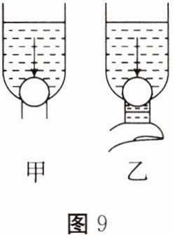 (2)图9乙中用手指堵住瓶口,再次观察乒乓球是否上浮。