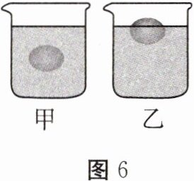 8. (多选题)小明探究浮力与哪些因素有关,他先配制了半杯浓盐水并将鸡蛋放入杯中,静止时鸡蛋刚好能悬浮在盐水中,如图 6 甲所示。然后他逐渐向杯中添加食盐,直至如图 6 乙所示。图 6 乙与图 6 甲相比,下列说法正确的是( )。
