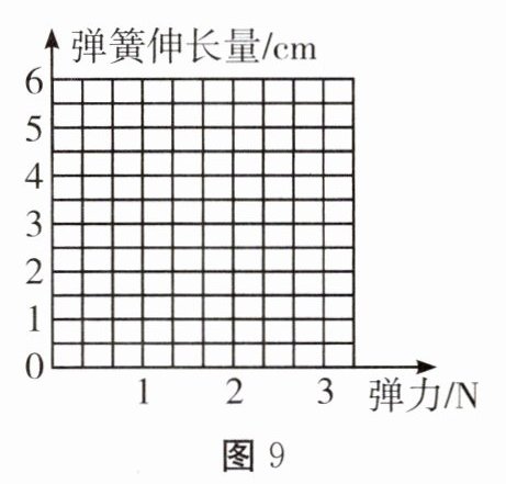 (2)在图9中画出弹簧伸长量与弹力的关系图像。