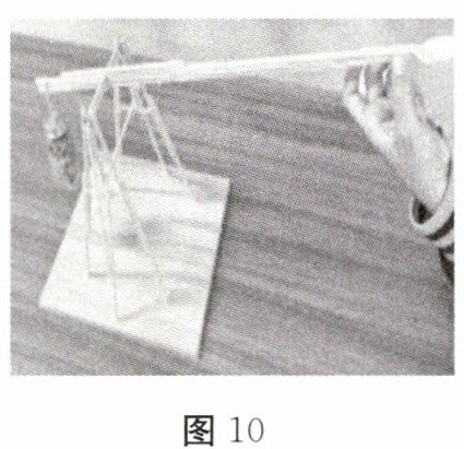 (3)将木架固定在一个底座上,一架简易的抛石机就制作完成了(如图10)。