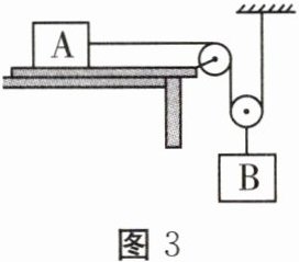 4. 如图3所示,物体A、B和动滑轮的重力分别为100N、20N和10N(绳重及绳与滑轮间的摩擦可忽略不计),此时物体A在水平面上向右做匀速直线运动,若用力F向左拉物体A,使物体A向左做匀速直线运动,则( )。