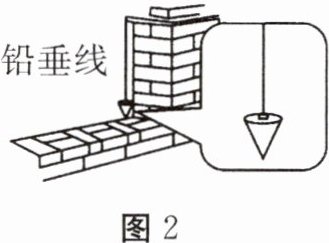 2. 如图2所示,建筑工人在砌墙时常常利用铅垂线来确定竖直方向,以此来检查所砌的墙壁是否竖直,这主要利用了( )。