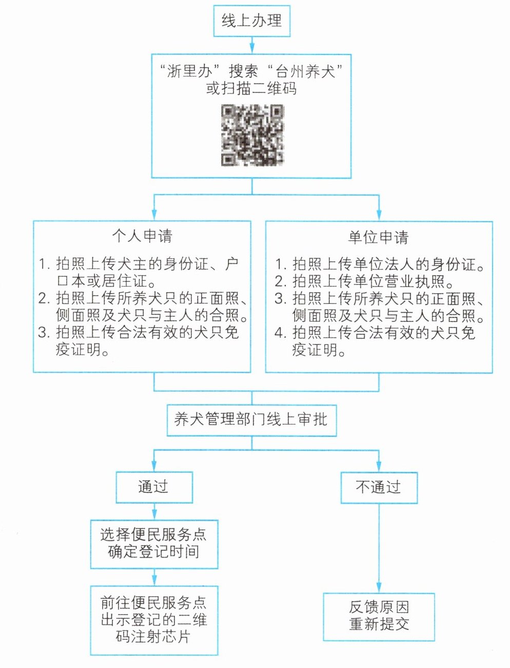示例:李奶奶,您好!应该这样操作,您看:先打开“浙里办”搜索“台州养犬”,进入界面后,将您的身份证、户口本、狗的免疫证明、狗的正面照和侧面照以及您与狗的合照拍照上传,然后等待线上审批。如果不通过,根据网页反馈的原因修改资料重新提交。如果顺利通过,您就点击选择您家附近的便民服务点预约时间,到时候您带着狗去服务点,出示登记的二维码,注射芯片就好了。