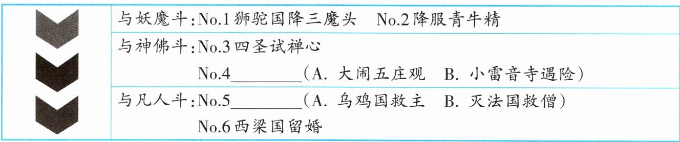 在《西游记》中,唐僧师徒四人的取经之路历经九九八十一难。根据孙悟空斗争的不同对象做如下分类,请同学们结合名著内容完成相关任务。