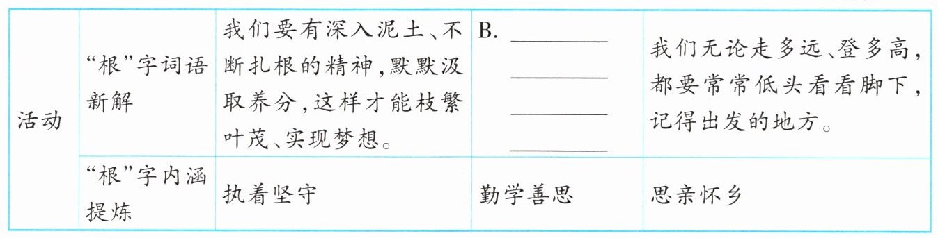 2. 请根据《“根”字含义演变图》和表中相关信息,完成下列任务。