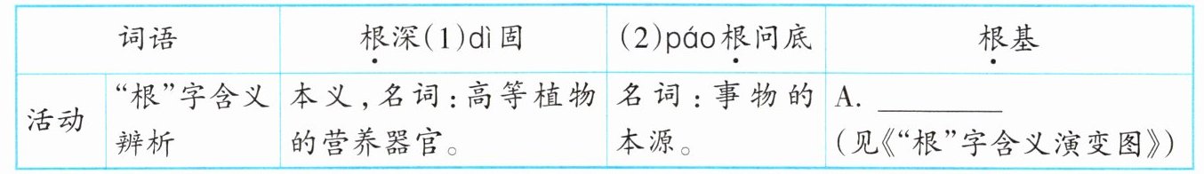 (1)请从演变图中为“根基”的“根”选择正确的含义,填写在A处。
