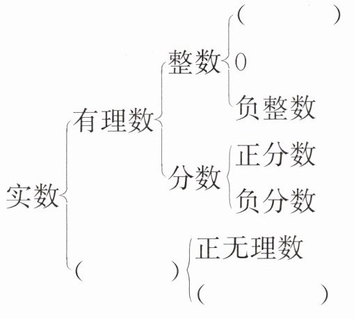 【解析】:实数分为有理数和无理数,整数分为正整数、$0$、负整数,无理数分为正无理数和负无理数。