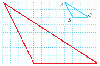 10. 将下图中的三角形面积放大到原来的4倍,画在方格纸上,使它们成为两个相似三角形。