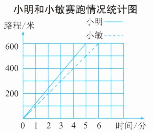 (2)小明到达终点后,小敏再跑()分钟到达终点。