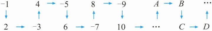 (1)在 A 处的数是正数(2)负数排在 B 和 D 的位置(3)第 2024 个数是正数,排在 A 对应的位置