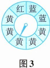 (3)图3的转盘转1次,转到黄色的可能性是()%。