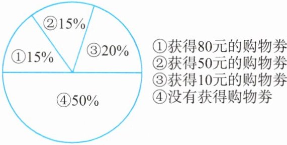 9. 在一次转盘游戏中,小文根据实验数据绘制出下面的扇形统计图,求每转动一次转盘所获购物券金额的平均数。