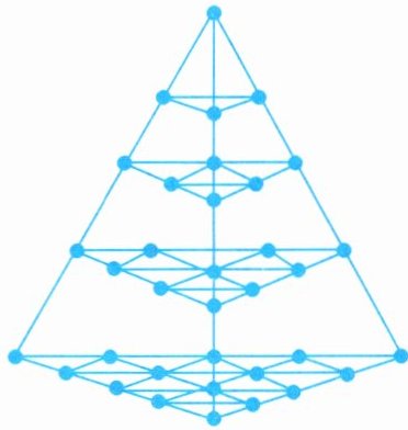 点的总数$=\frac{1}{6}n(n + 1)(n + 2)$(n为层数)