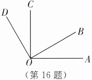 16. 如图,$\angle AOC = 90^{\circ}$,$\angle AOB = \angle COD$,则$\angle BOD = $