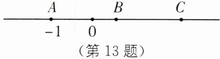 13. 如图,点A,B,C在数轴上,点A表示的数是$-1$,点B是AC的中点,线段$AB= \sqrt{2}$,则点C表示的数是