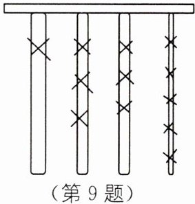9. 新情境 结绳计数 在古代,人们通过在绳子上打结来计数,即“结绳计数”.当时有位父亲为了准确记录孩子的出生天数,在粗细不同的绳子上打结(如图),由细到粗(右细左粗),满七进一,那么孩子已经出生了(