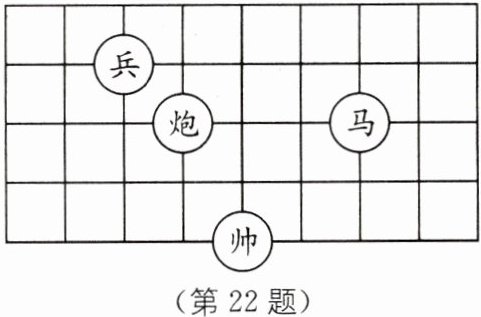 22. 如图,在象棋盘上建立平面直角坐标系,使“马”位于点 $ (2,2) $,“炮”位于点 $ (-1,2) $,写出“兵”所在位置的坐标。