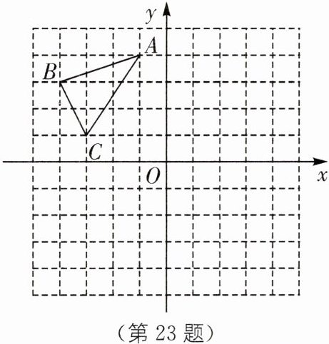 23. 如图,在边长为1个单位长度的小正方形网格中建立平面直角坐标系. 已知三角形ABC的顶点A的坐标为A(-1,4),顶点B的坐标为(-4,3),顶点C的坐标为(-3,1).