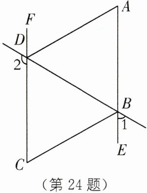 24. 如图,∠1+∠2= 180°,∠A= ∠C,DA平分∠BDF.