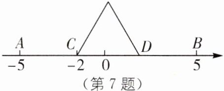 7. 如图,嘉嘉将一根笔直的铁丝放置在数轴上,点A,B对应的数分别为-5,5,从点C,D两处将铁丝弯曲两头对接,围成一个三角形,其中点C对应的数为-2,则点D在数轴上对应的数可能为(