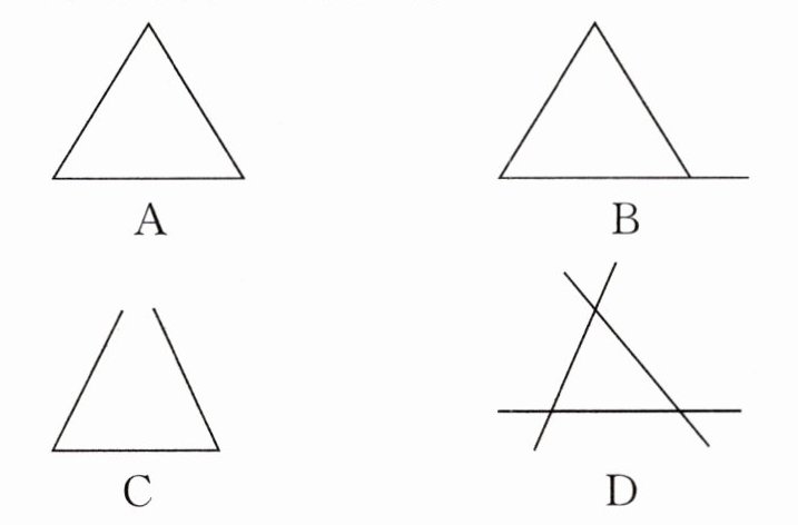 2. 如图都是由三条线段组成的图形,其中是三角形的是(