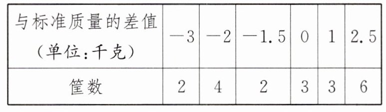 (2)$-3×2+(-2)×4+(-1.5)×2+0×3+1×3+2.5×6=1$(千克).
