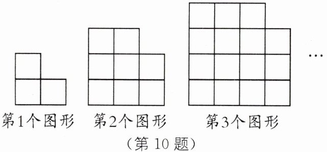 10. 用大小相等的小正方形按一定规律拼成如图所示的图形,则第$n$个图形中小正方形的个数是(