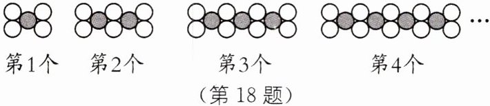 18. 如图是一组有规律的图案,它由若干个大小相同的圆片组成.第1个图案中有4个白色圆片,第2个图案中有6个白色圆片,第3个图案中有8个白色圆片,第4个图案中有10个白色圆片,…,依此规律,第$n$个图案中有